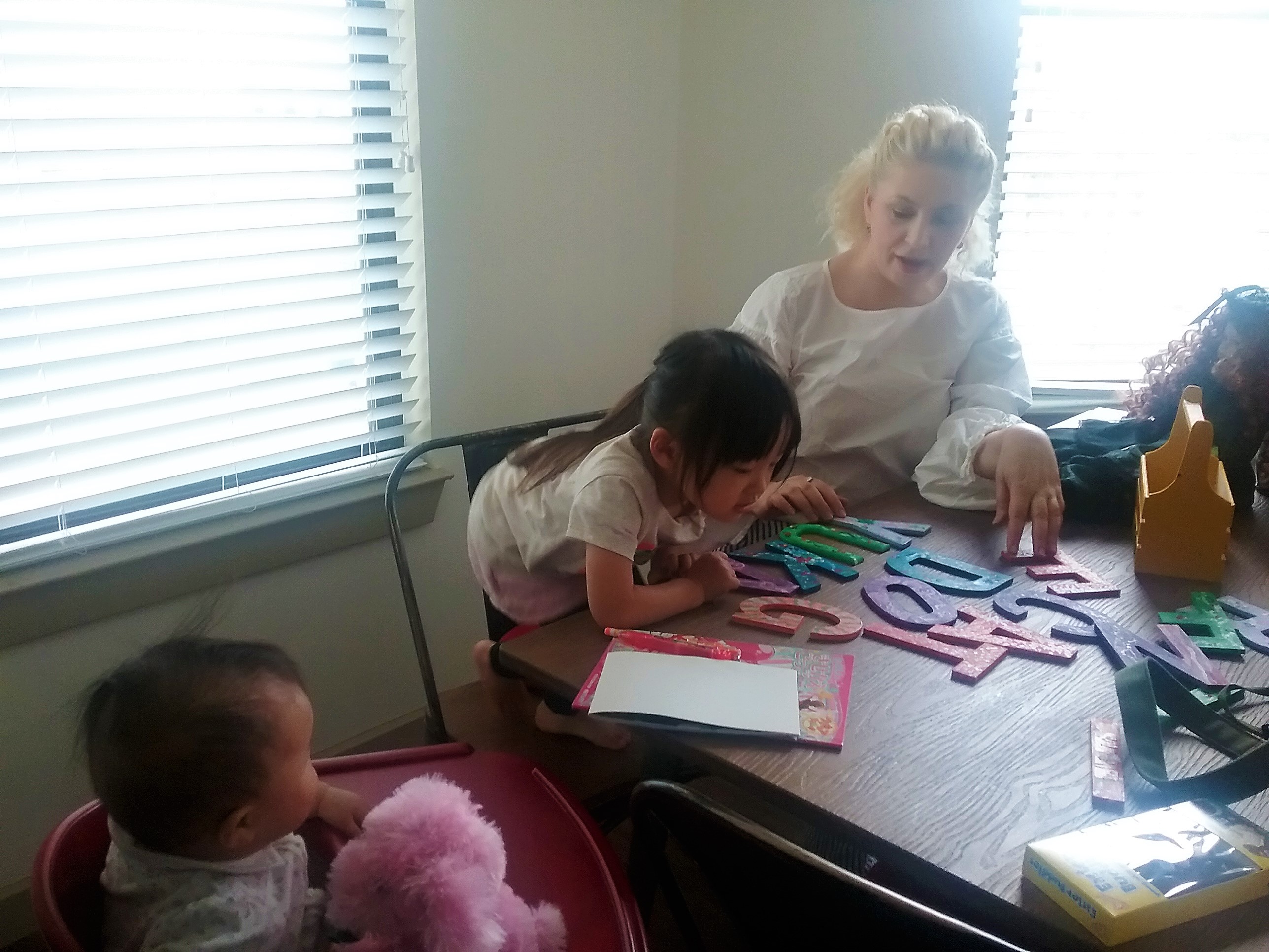 (Left) Yuka, 3 years old, and Mikoto, 6 months > English class